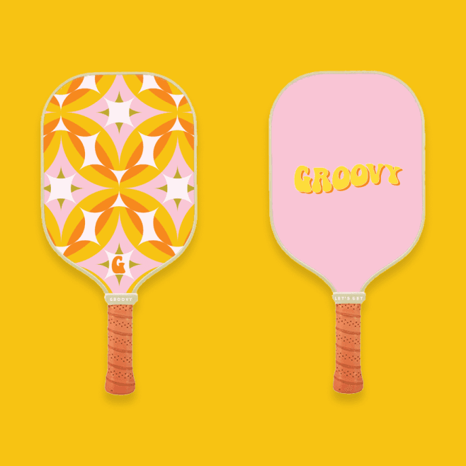 Unleash your inner 70s with the Groovy Swing paddle, showcasing vibrant colors and funky patterns for a fun and energetic game.